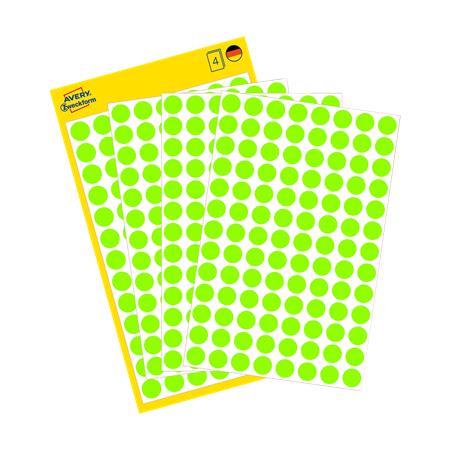 Etikett, 8 mm, kör, AVERY ZWECKFORM, neon zöld, 416 etikett/csomag