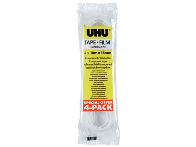 Ragasztószalag, 15 mm x 10 m, 4 db, UHU, átlátszó