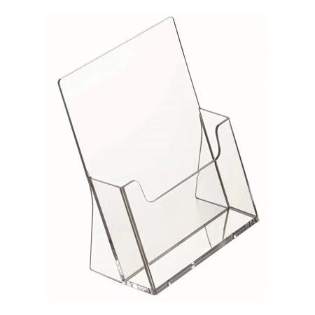 Az A4 méretű asztali szórólaptartó ideális megoldás prospektusok és kiadványok rendezett, esztétikus kihelyezésére ügyfélterekben.